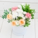 Virágdoboz vegyesen, pasztel színekben.