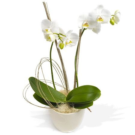 Cserepes orchidea, díszcsomagolással szállítva. Bármely lakás, iroda hosszantartó dísz lehet.