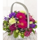 Gyönyörű nyári virágkosár, amelyet helyi virágosunk a legfrissebb virágokból elkészít és egyenesen az ajtóhoz szállít. Élénk, vibráló színek, szezonális virágok kosárba rendezve