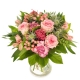 Egy kicsi édes virágos meglepetés. Pirospozsgás színvilág, stílusos és klasszikus design. Virágküldés személyesen.
